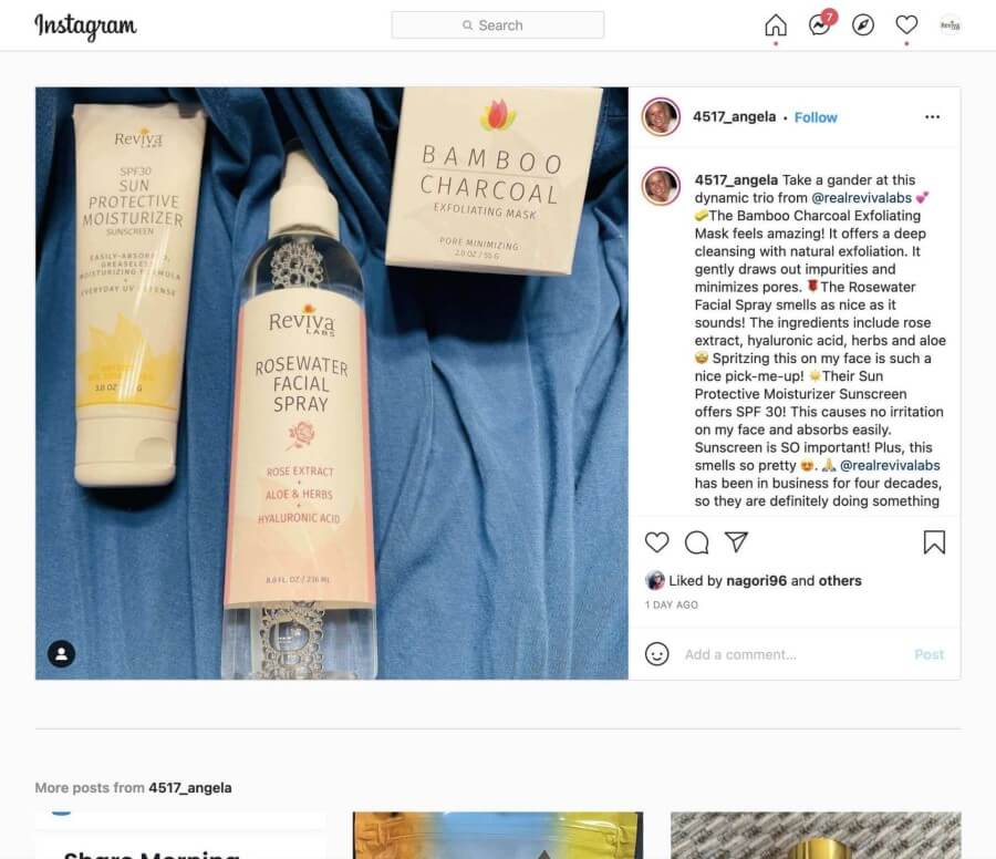 Angela (@4517_angela) Health/Beauty Influenster, Registered Nurse, Product Reviewer, Texan is enjoying Reviva’s Skin Care. She is really enjoying our Charcoal Mask and all the other items.