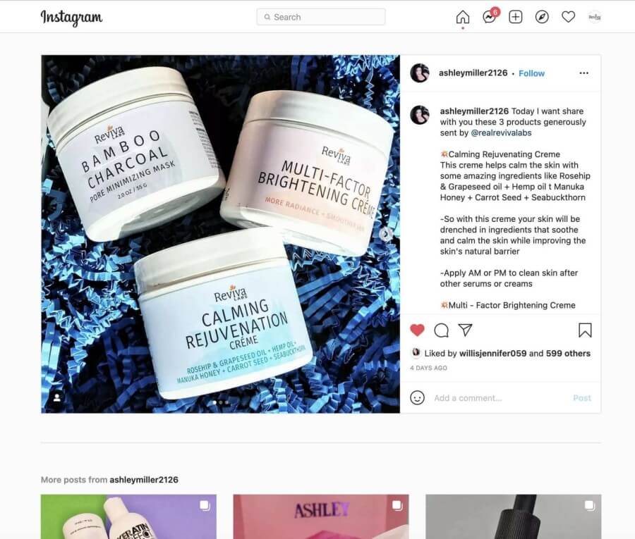 Ashley Miller (@ashleymiller2126), Beauty, Cosmetic & Personal Care enthusiast tried three Reviva skin care products. Ashley tired our Charcoal Mask, Multi-Factor Brightening Creme, and our Calming Rejuvenation Creme. She’s enjoying them all but the Multi-Factor Creme is her favorite.