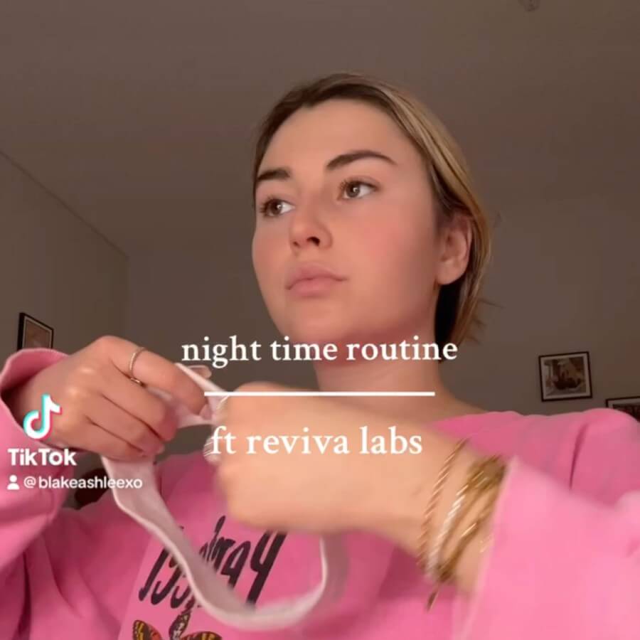 Blake ( @blakeashleexo ) switches up her daily skincare routine with three of Reviva Labs’ skincare products. The three products that she tried was our Bamboo Charcoal Pore Minimizing Mask, Sea Salt Cleansing Gel, and Cleansing Milk. She first started out with the Bamboo Charcoal Pore Minimizing Mask which is a detoxifying mask that cleanses and gently exfoliates at the same time so that you are left with improved and healthy looking skin. After removing the mask shes uses the Sea Salt Cleansing Gel which cleanses your skin, leaving your face feeling refreshed and immaculate leaving you with an afterglow.