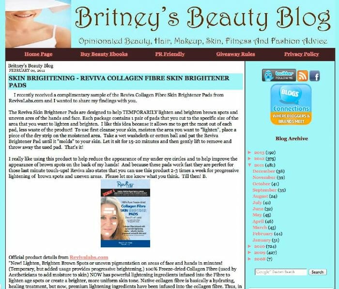 Britney, of Britney’s Beauty Blog, liked the convenience of our Collagen Fibre Skin Brightener Pads, and the ability to cut the pads to fit the areas where she needed them the most. But even more than the convenience of the product, Britney loved the results!