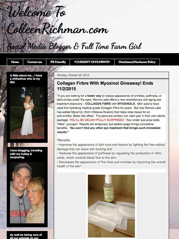 Colleen Richman had been dealing with a puffy ender-eye area for some time. It made her feel tired and older, and she was delighted to try something that would help. She found that Reviva Labs’ Collage-Fibre Eye Pad Kit not only helped reduce the under-eye puffiness and made her look and feel younger, but it felt like having a spa day in her home.