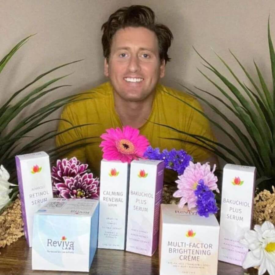 Jon Moses ( @jon.mosesinfluencer ) artist, has been using Reviva Labs for over a year and he loves it! Jon has tried many of Reviva’s products, but in this post he showcases Reviva’s Retinol Serum, Calming Renewal Serum, Calming Rejuvenation Créme, Calming Renewal Serum, Bakuchiol Plus Serum, and the Multi-Factor Brightening Créme. He mentions, “their was a massive boom about their eye care range and it’s not stopped their. I literally have had panda eyes my whole life so I’m always on the hunt for the next thing that can help. So when I heard about this I jumped on it!!”