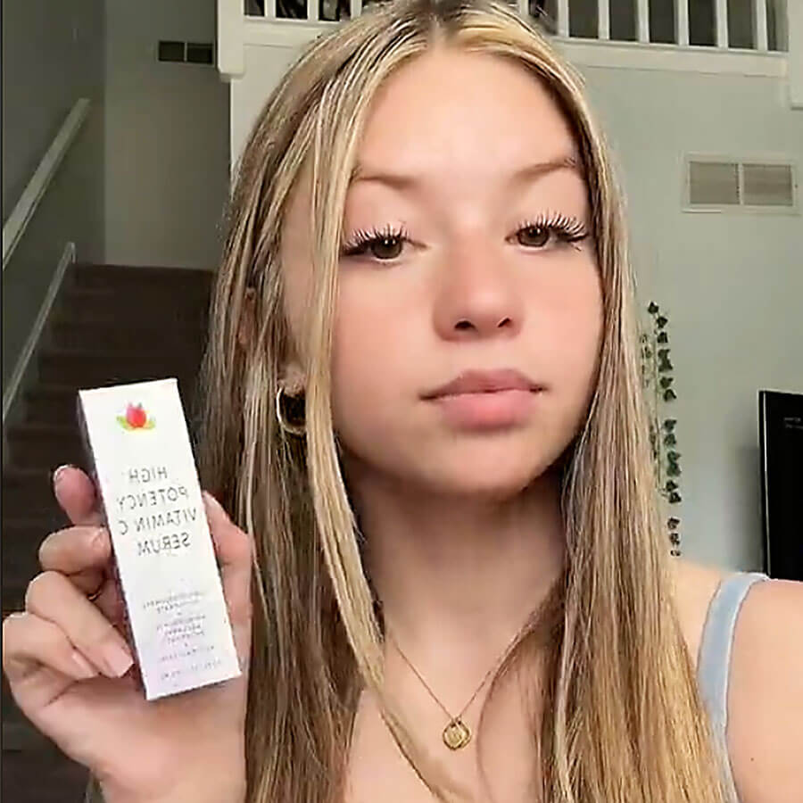 Jordan ( @jordan.zahava ) content creator received Reviva Labs’ products full of Vitamin C. She tried out four of our products that make up our Vitamin C Infusion routine and she loved them all. First she uses the Sea Salt Cleansing Gel, which she comments, “First of all I love the packaging, its like really good.” She then tries out the Eye Gelee Serum which she says “smells like hydrangeas.” Jordan follows up with the High Potency Vitamin C Serum, which she puts all over her face. Finally she uses the Ultra Rich Ultra Light Daytime moisturizer and says, “woah that just made my skin feel so smooth.”