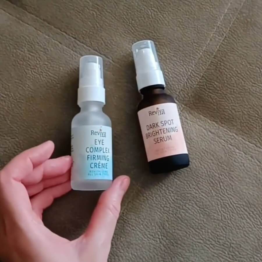 Reviva’s Eye Complex Firming Créme helps smooth & firm the appearance of the eye area while reducing the look of dark circles. Our Dark Spot Brightening Serum helps reduce the appearance of dark spots and contains antioxidants to help combat future discoloration. Both of these formulas nourish the skin with plant oils and extracts, helping the skin appear healthier and more youthful.