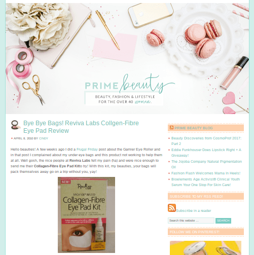 Cindy Ingalls is the editor of Prime Beauty, and she’s given Reviva’s Collagen Fiber Eye Pad Kit an “A.” She knows Reviva Labs’ reputation for product quality, and found the Collagen Fiber Eye Pads to be another impressive product from a company rooted in science and quality.