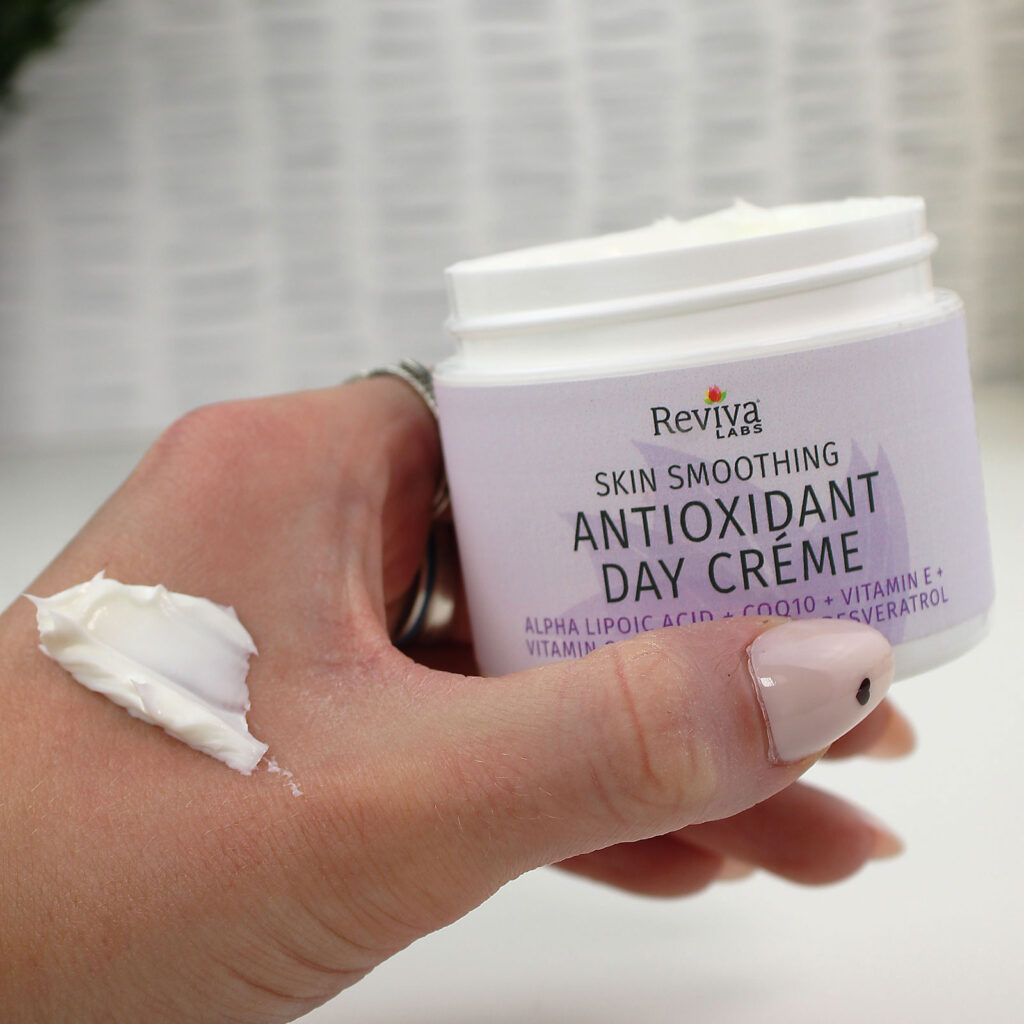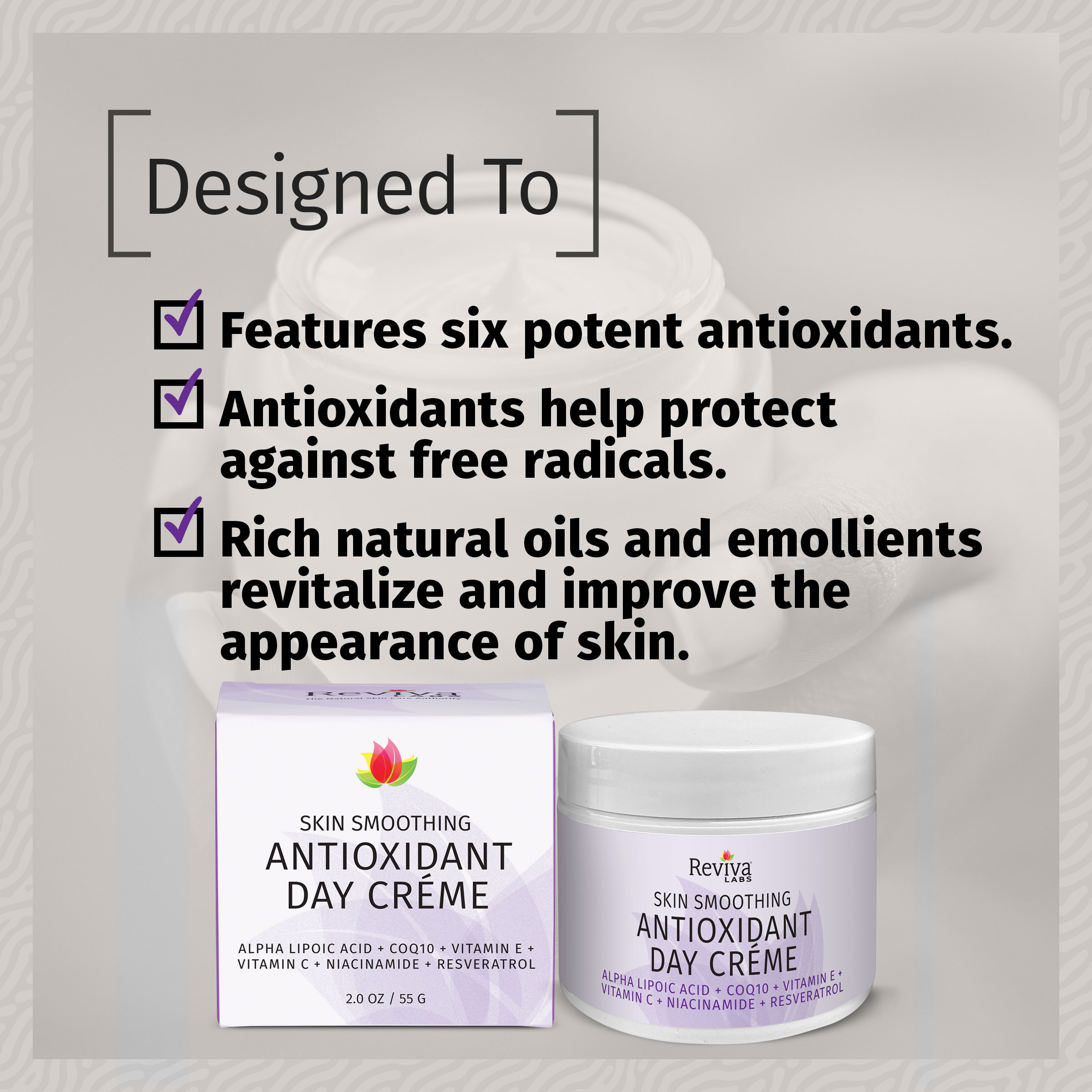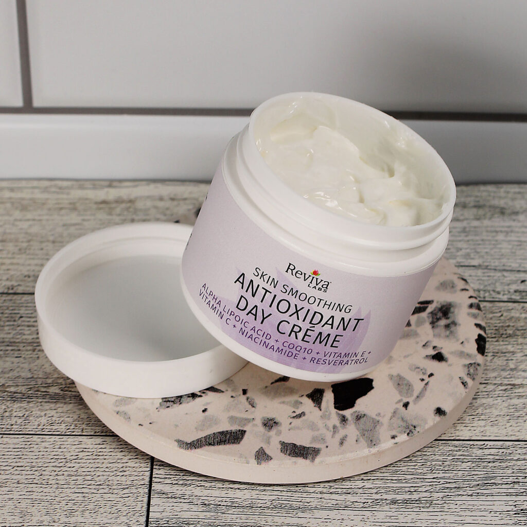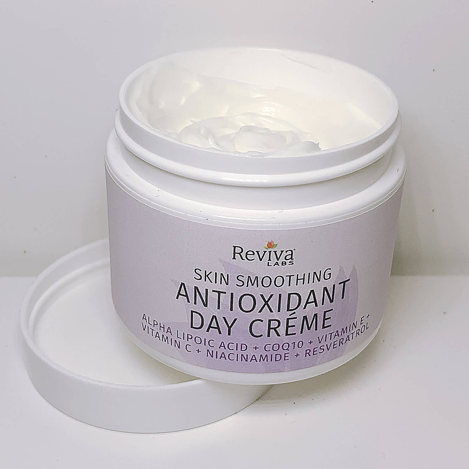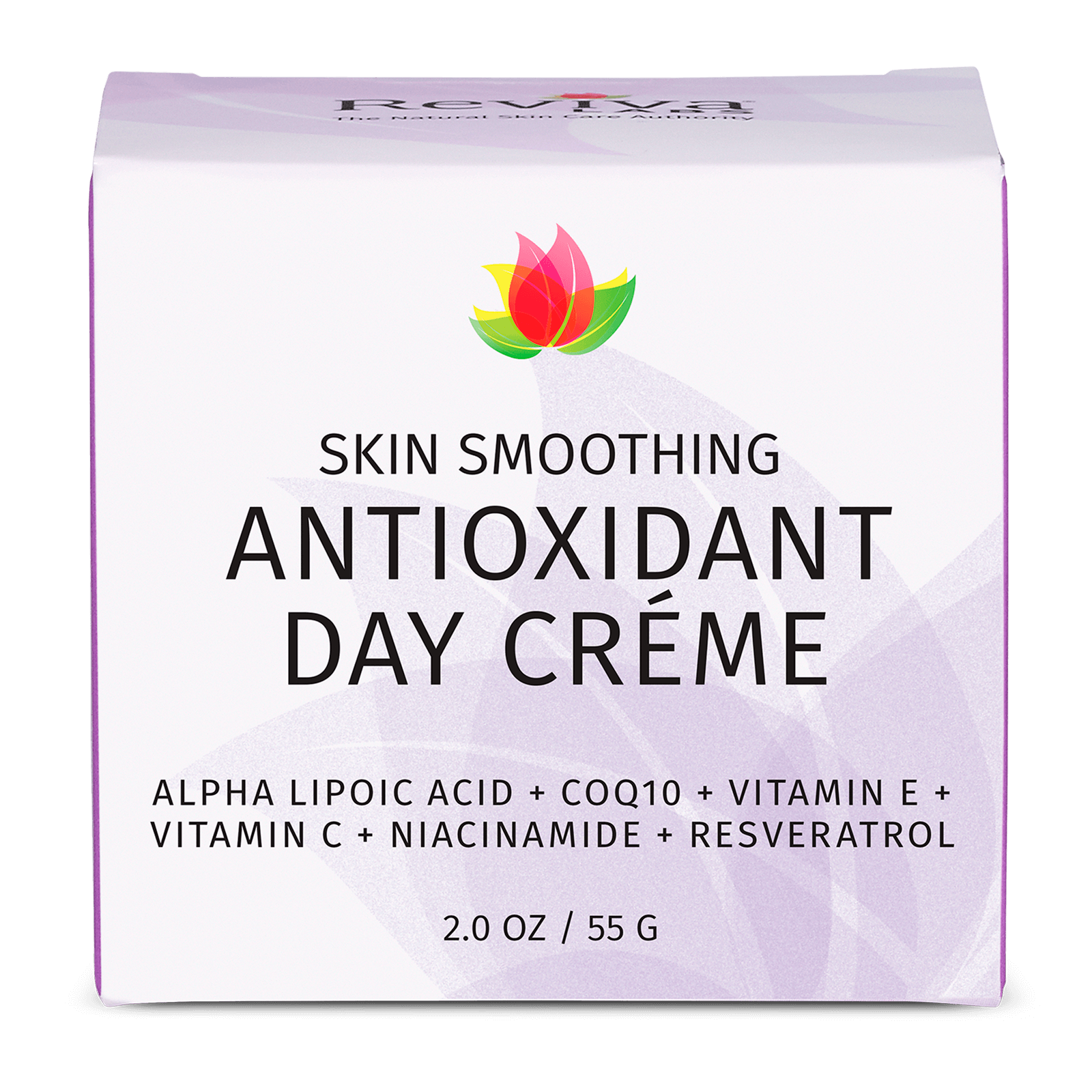 Support your skin with Reviva’s antioxidant-rich formula featuring Alpha Lipoic Acid, Vitamin C, Vitamin E, Green Tea, Niacinamide, and Resveratrol. This advanced blend helps reduce the appearance of fine lines and uneven tone while promoting a smoother, more radiant complexion. Natural oils and emollients nourish and revitalize skin’s texture, helping to enhance the look of clarity and youthful vitality.