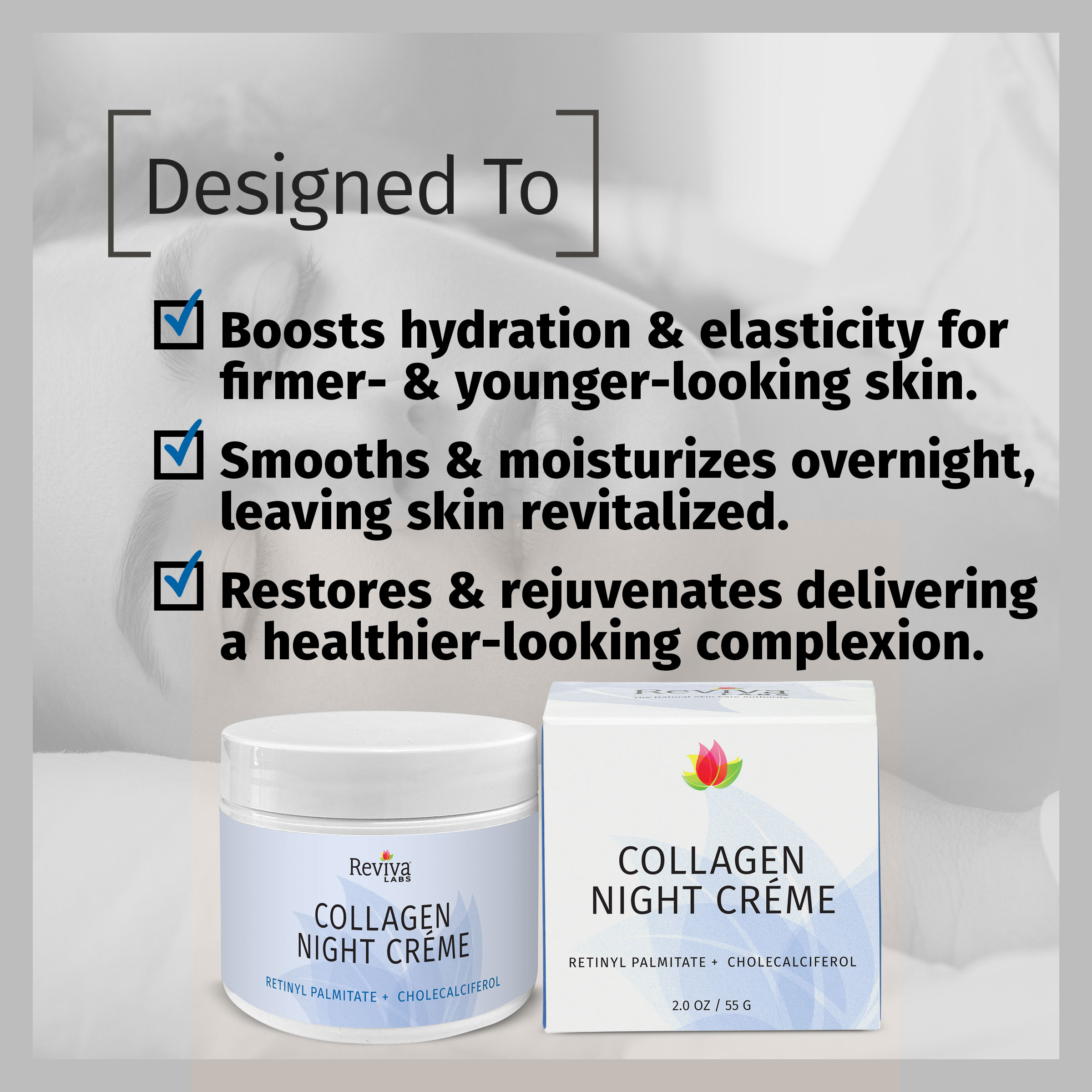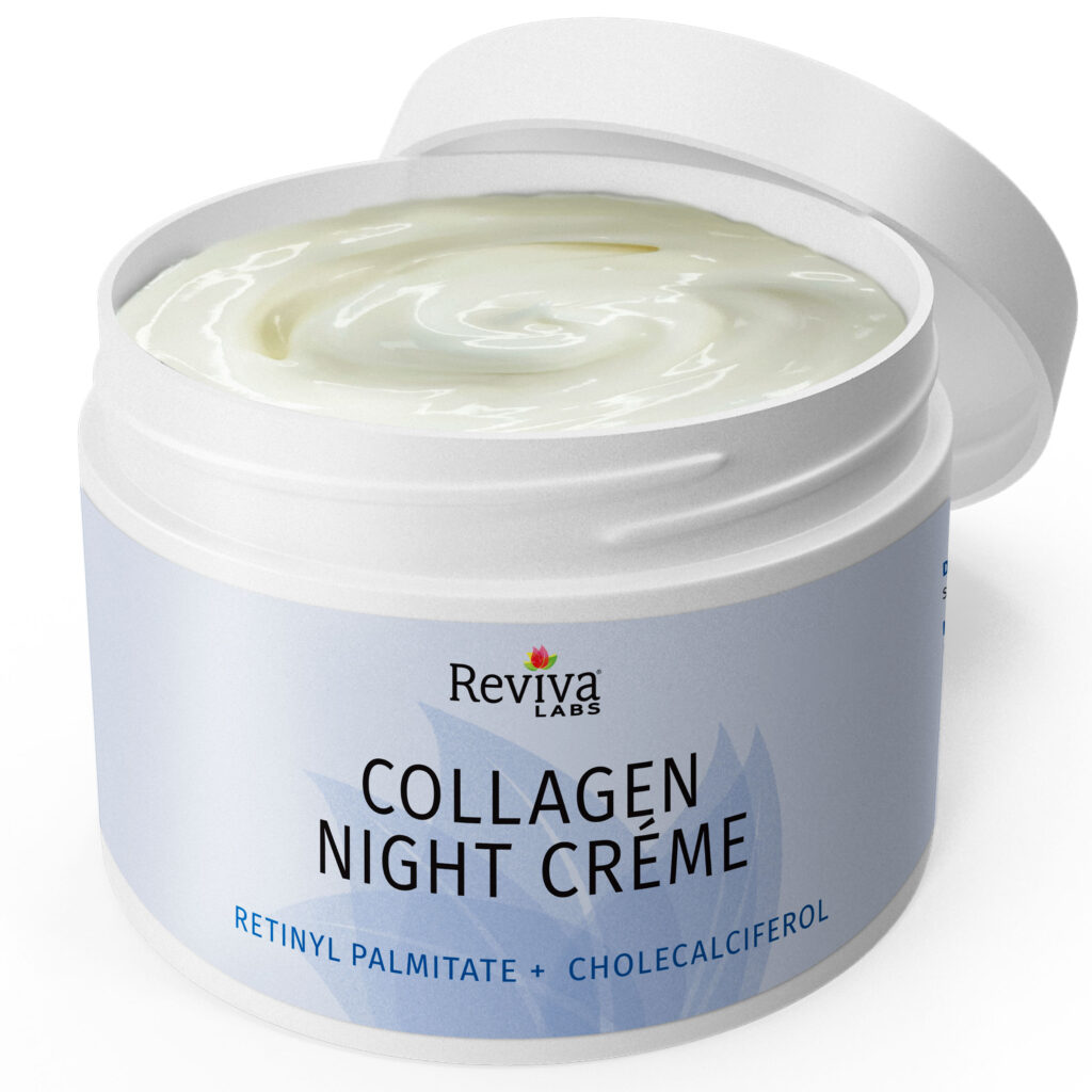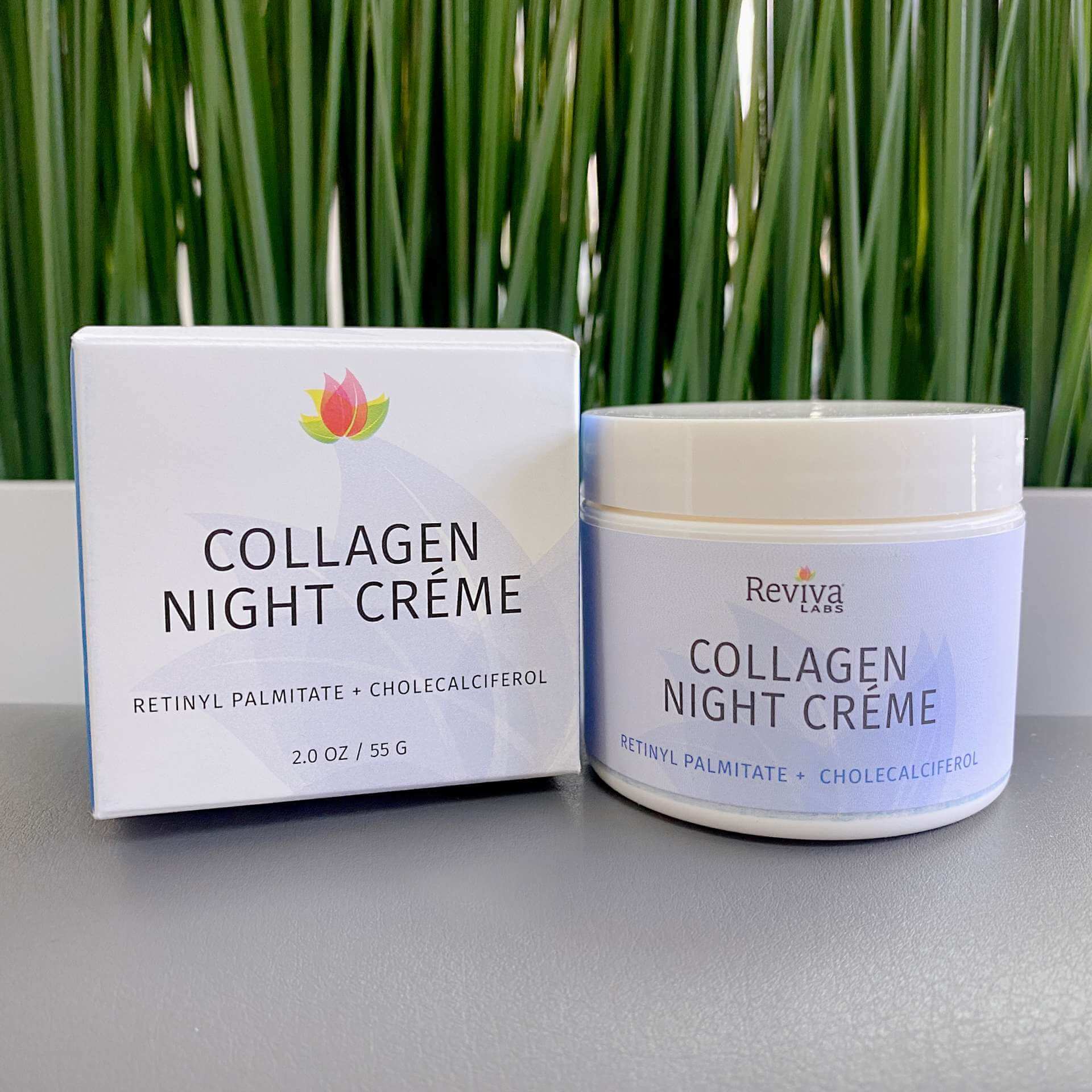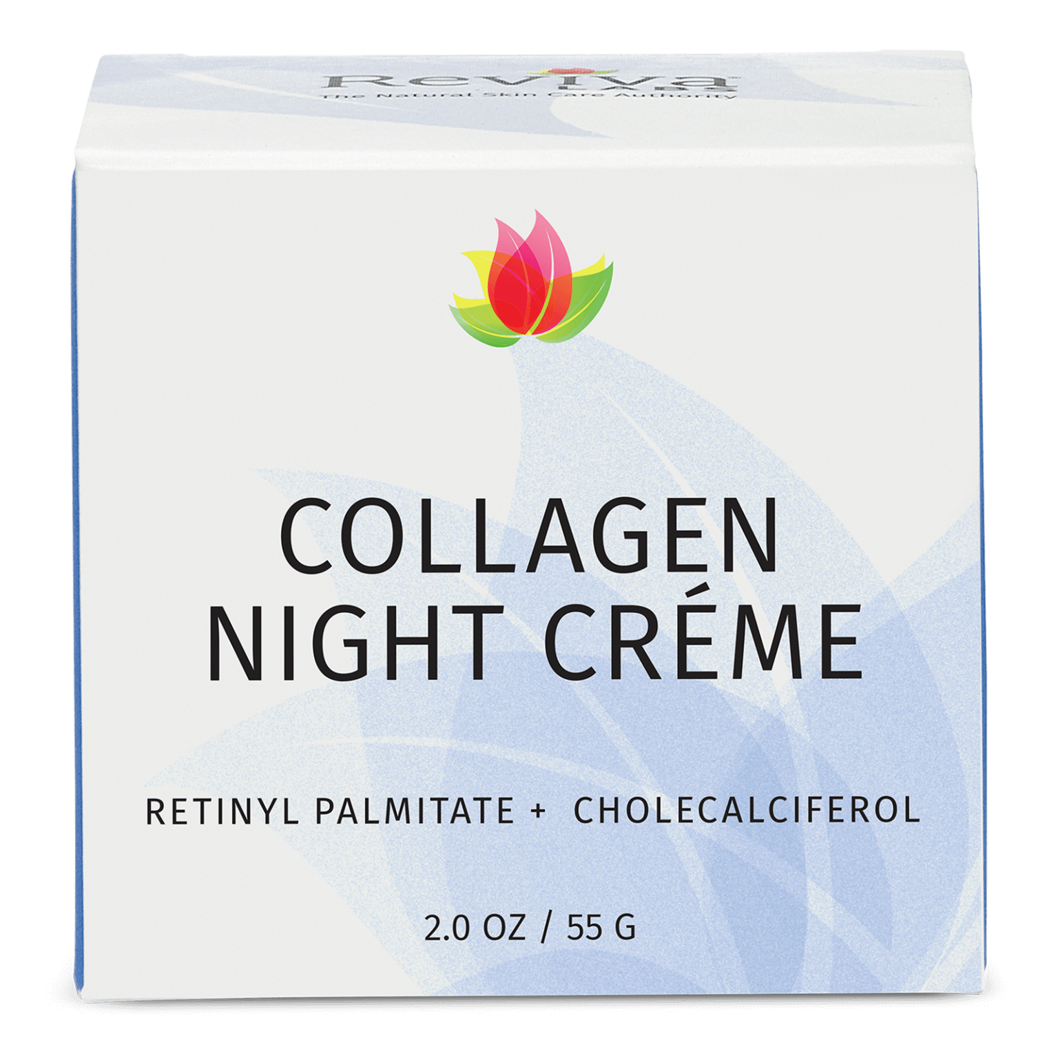 Reviva’s Collagen Night Creme utilizes a potent hydrolyzed collagen to improve absorption while soothing and moisturizing dry skin as it improves the appearance of your complexion. Our Collagen Night Cream deeply hydrates the skin, leaving it looking revitalized and rejuvenated.