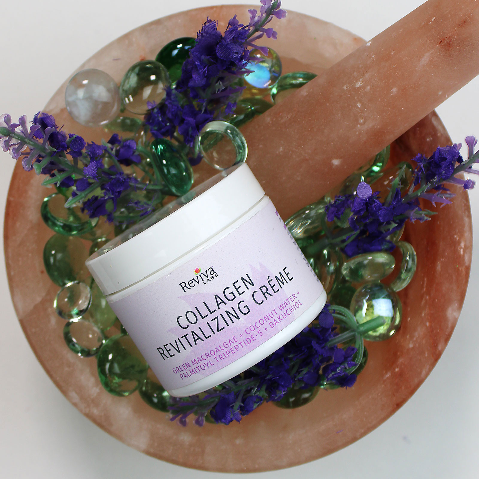- Palmitoyl Tripeptide-5 (aka Syn-Coll™) a synthetic peptide designed to stimulate the skin’s natural mechanism to produce collagen. Manufacturer studies showed it helps protect and boost collagen and improve skin texture while also helping to reduce the appearance of fine lines and wrinkles.