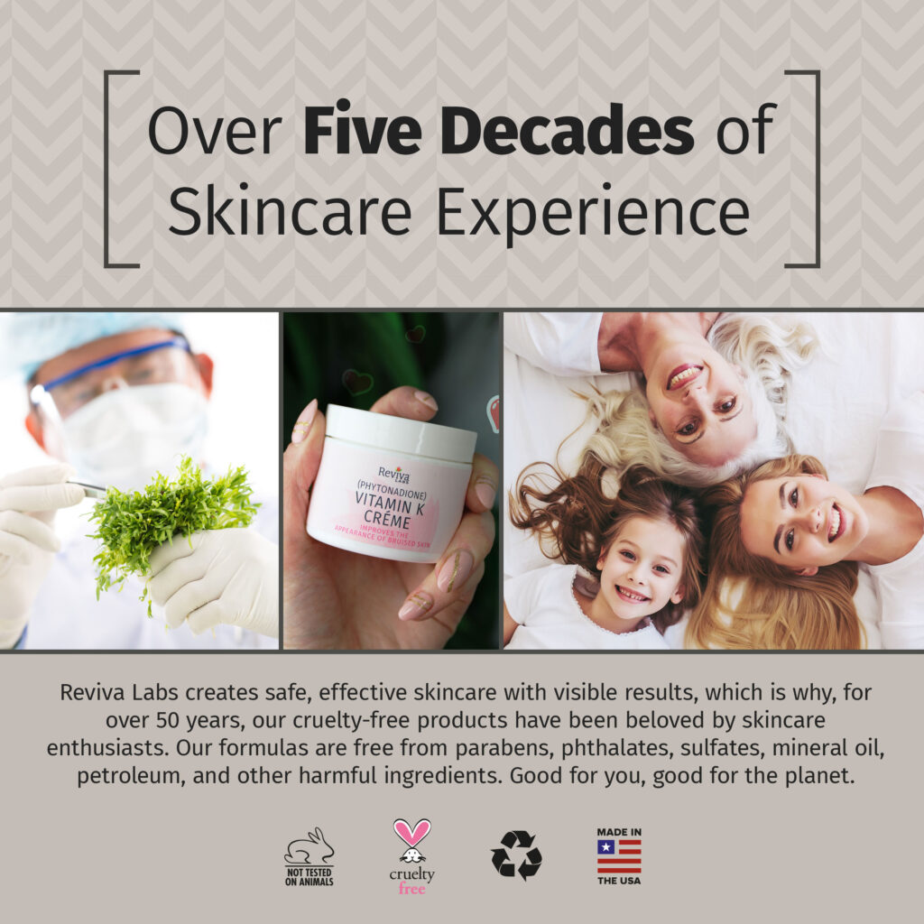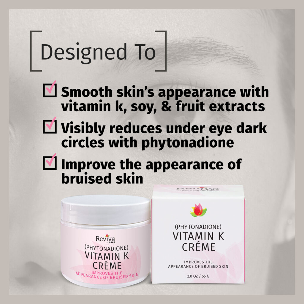 Vitamin K, Soybean Oil, and a complex of skin-smoothing fruit extracts help reduce the appearance of bruised skin, while improving your overall skin and/or complexion. Vitamin K is also beneficial for under eye dark circles and our cream can be used under the eyes to help alleviate the appearance of under eye dark circles.